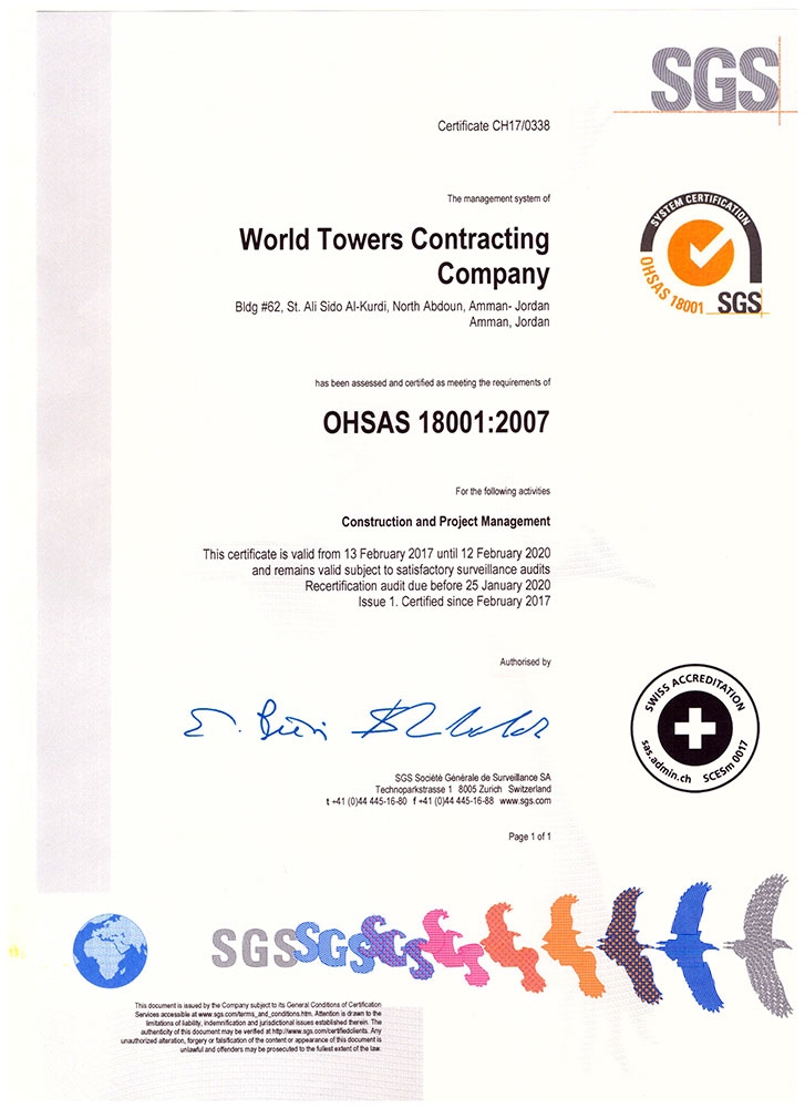 The company also obtained during the year 2016 the certificate of the International Organization for Standardization (ISO9001: 2015) and the certificate of Safety and Occupational Health Administration OSHA 18001: 2007, and that is the company's moment to provide the best and best services and ensure the highest levels of safety and security in its locations.